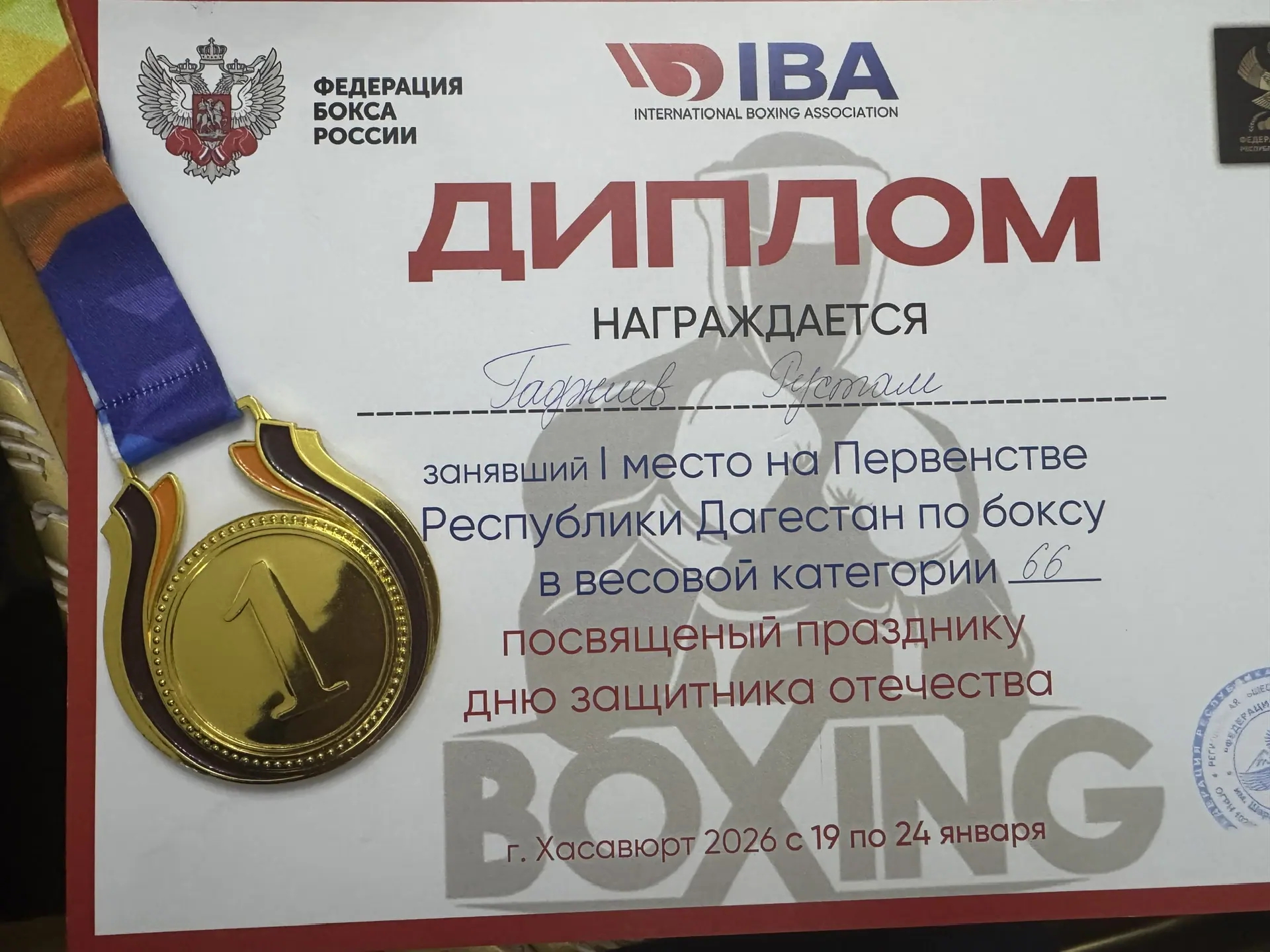 С 19 по 24 января в городе Хасавюрт, во дворце спорта им. Г.Гамидова проходило Первенство Республики Дагестан по боксу среди юношей старшего возраста 15 - 16 лет (2010-2011 гг.), посвященного Дню защитника Отечества.