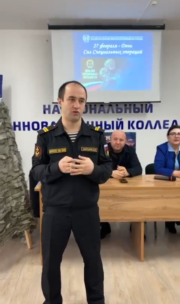 Почетным гостем встречи стал участник специальной военной операции на территории Украины Магомедов Джамалудин Рамазанович. Живой рассказ о боевом пути опытного военного стал для ребят не только возможностью узнать о героизме и мужестве русского солдата, но и примером верности данному слову, выбранному пути, присяге и воинскому долгу. Обучающиеся с интересом посмотрели информационный ролик история возникновения праздника и узнали, что в народе его называют Днём вежливых людей. Это название не случайно, оно связано с событиями в Крыму в феврале-марте 2014 года, где участвовали Силы специальных операций. Мероприятие было организовано заместителем директора по воспитательной работе Избуллаевой Зарией Байсонгуровной и советником директора по военно-патриотическому воспитанию Абдулкадыровым Зауром Абдулкадыровичем. Вела мероприятие советник директора Аминова Гулияр-Ханум Гаджиевна. Также для обучающихся ПОАНО "НИК" прозвучали стихи, исполнены были музыкальные номера и в завершении мероприятия прошло показательное выступление по сборке и разборке автоматов участников отряда "Молодая гвардия" ПОАНО "НИК".