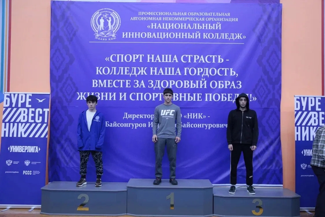 В минувшие выходные, 4-5 апреля 2026 года, в Махачкале, в спортивном зале Спорткомплекса «Земфира» прошли соревнования в рамках спартакиады среди студентов ССУЗов и ВУЗов РД по Спортивной борьбе «УниверЛига-Дагестан» на призы учредителя ПОАНО «Национальный инновационный колледж» Байсонгурова Ибрагима Байсонгуровича, и приуроченное к 81 годовщине Победы в Великой Отечественной войне.