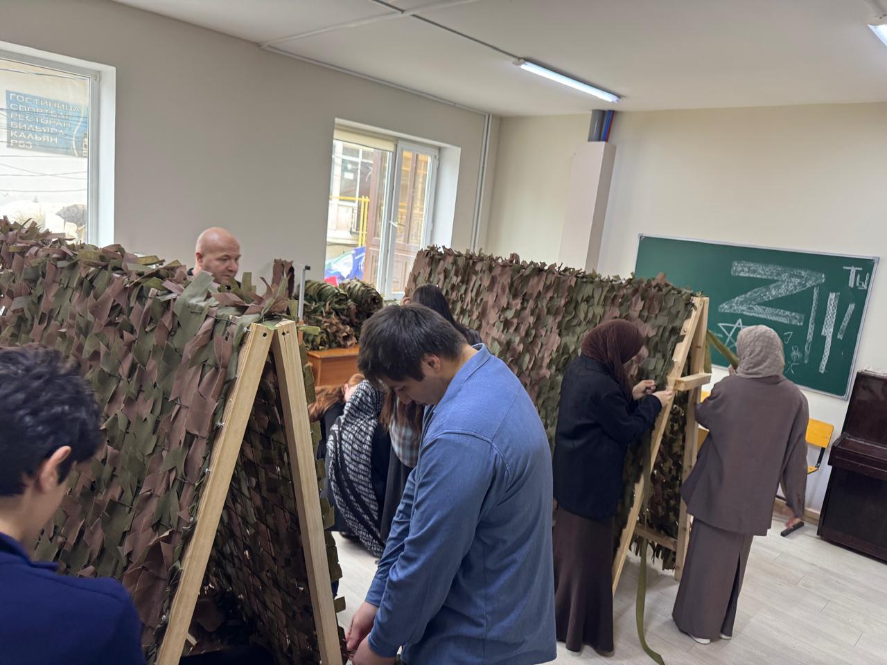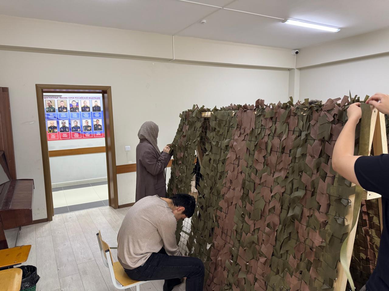 · Изготовление маскировочных сетей для наших бойцов в зоне СВО — каждый смог внести свой практический вклад.