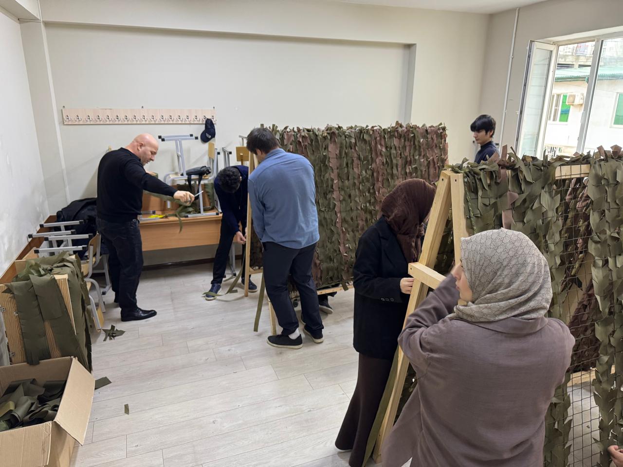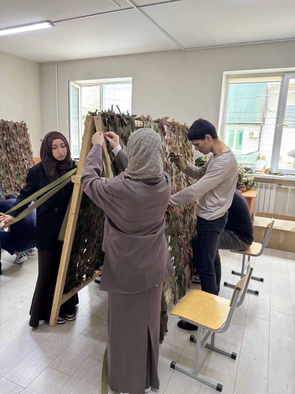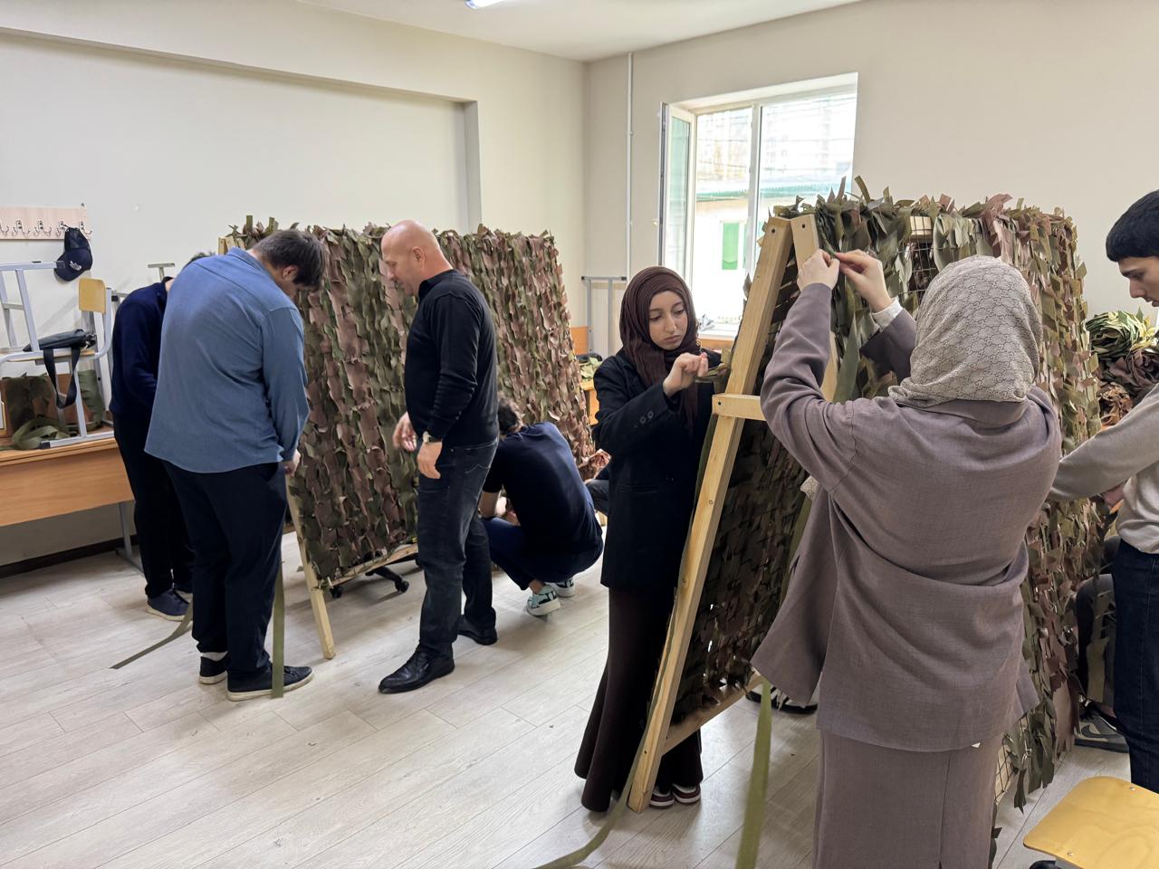 Уже несколько дней как в ПОАНО "НИК" начали плести маскировочные сети. В процессе участвуют педагоги и студенты. Уже несколько маскировочных сетей отправили в зону спецоперации. колледж практически с самого начала спецоперации поддерживает связь с участниками СВО. В зоне спецоперации боевые задачи выполнял и сотрудник колледжа - советник директора по военно-патриотическому воспитанию Абдулкадыров Заур Абдулкадырович, поэтому из первых уст известно, какая помощь защитникам необходима в первую очередь. Сейчас, когда особенно возникла потребность в маскировочных сетях, Заур Абдулкадырович продумав разные варианты, предложил в колледже незамедлительно приступить к их плетению. К процессу подключаются все, у кого есть время. Кто-то посвящает этому все перемены, другие остаются после пар, освобождённые от физкультуры студенты также спешат на помощь. Таким образом, получается непрерывный поток. На одну масксеть уходит около 3-4-х часов. При этом участие в процессе — дело добровольное.