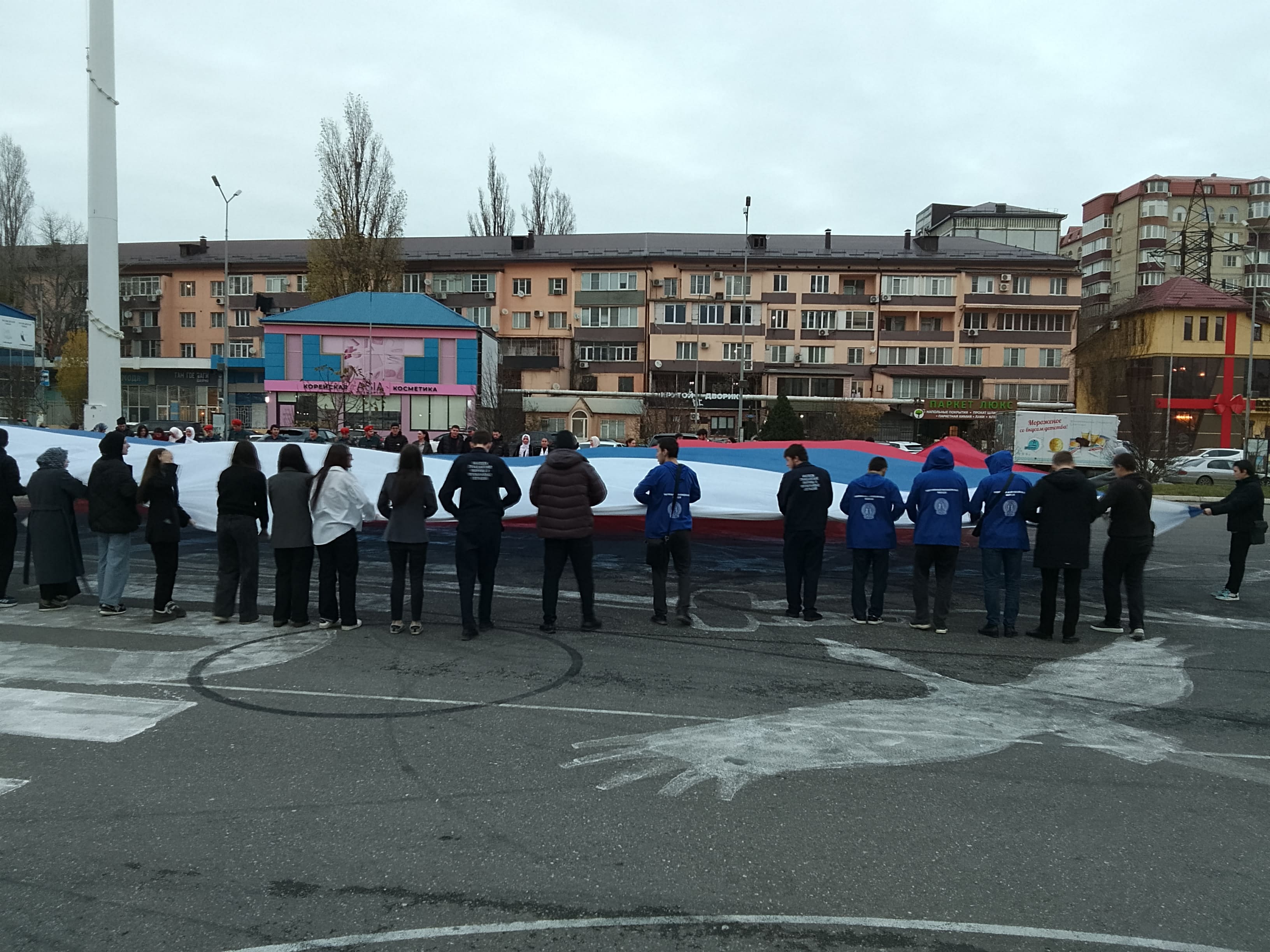 Сегодня 22 декабря в историческом парке «Россия — моя история» состоялось ключевое событие акции. Именно отсюда были направлены КАМАЗы с гуманитарной помощью, собранной представителями системы СПО. В грузах — необходимые и ценные вещи, подготовленные с особым вниманием и заботой. В Акции «СПО для СВО», принимают участие все, кто готов поддержать наших защитников, разделяет ценности взаимопомощи и верит в силу сплочённости, готовые в любую минуту присоединиться к участию и стать частью этого важного и доброго дела. Одним из таких активистов, можно с уверенностью сказать флагманов этого движения является Абдулкадыров Заур Абдулкадырович - советник директора по военно-патриотическому воспитанию ПОАНО "НИК". Вот и сегодня он принял непосредственное участие в центральном этапе "Акции". Вместе с обучающимися - волонтерами нашего колледжа Заур Абдулкадырович стал участником мероприятия - "флешмоба" по развертыванию полотна одного из главных символов Государственной власти Российской Федерации - Флага РФ.
