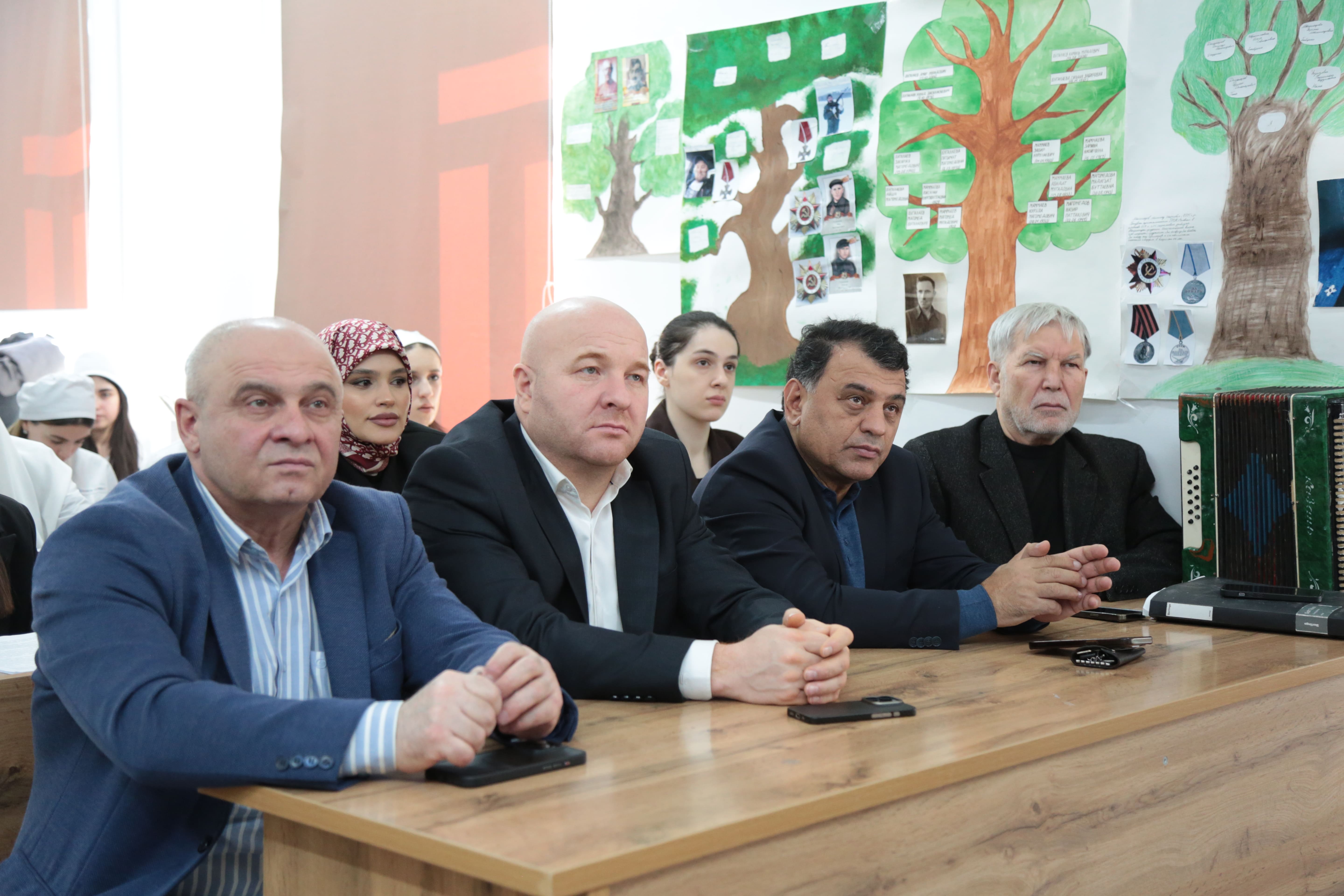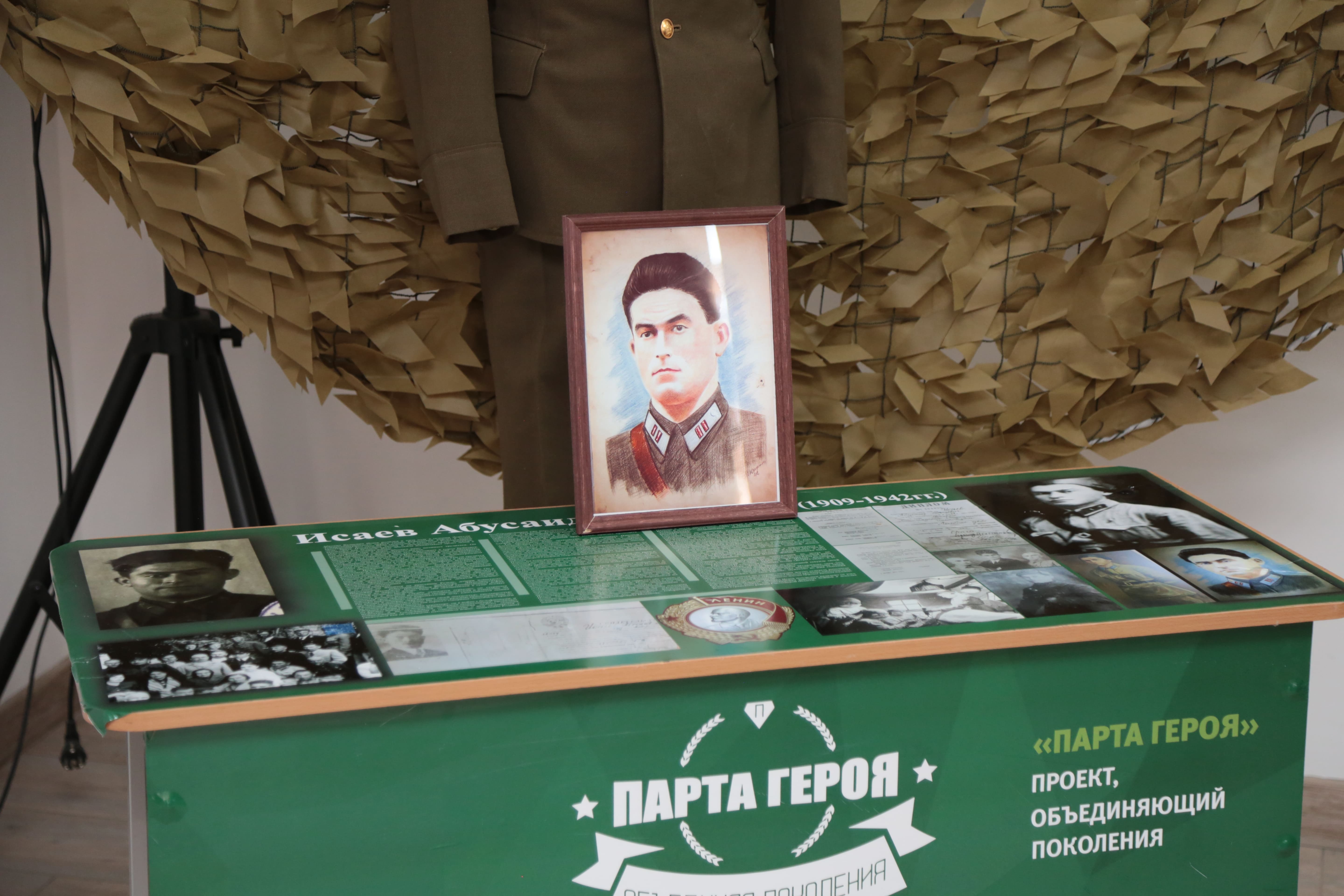 Кульминацией мероприятия стало открытие «Парты Героя», посвященное памяти участнику Великой Отечественной войны, уроженцу села Доргели Исаеву Абусаиду Валиевичу (1909-1942гг.) Директор колледжа Байсонгуров Ибрагим Байсонгурович, являющийся тоже выходцем с прекрасного села Доргели, торжественно открыл «Парту Героя». Участники мероприятия почтили память Героя минутой молчания и возложили на парту цветы. «Мы открываем парту, приуроченную памяти моему земляку, Абусаиду Валиевичу Исаеву. Светлая и вечная память останется в умах и сердцах дагестанцев о легендарном враче, спасшем многих бойцов от неминуемой гибели. Даже будучи смертельно ранен Абусаид Исаев продолжал оперировать и успел спасти еще семь жизней. Время быстротечно, но оно не властно над подвигом, сколько бы лет ни прошло, война не уйдет из памяти. И в сердцах новых поколений будет вечно жить благодарность участникам Великой Отечественной – живым и мертвым, тем, кто спас мир от фашистской чумы, отстоял право людей быть свободными», — отметил директор колледжа Ибрагим Байсонгурович. "Эта парта, на которой размещена фотография и информация о герои, станет не только местом для учебы, но и постоянным напоминанием обучающимся о подвиге их земляков, о ценности мужества, патриотизма и самоотверженности, - пояснила советник директора Аминова Гулияр-Ханум Гаджиевна, - благодаря подобным акциям молодое поколение получает живой урок мужества, а память о героях-земляках становится частью учебного дня".
