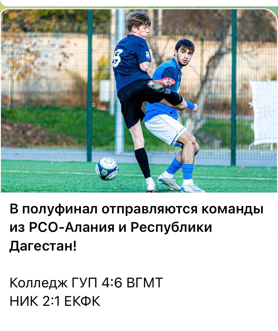 С 5 по 8 ноября в Ессентуках проходит первый в истории финальный этап Общероссийского дивизиона Национальной студенческой футбольной лиги среди команд ссузов (профессиональных образовательных организаций). Матчи в формате 6х6 проходят на четырёх полях стадиона «Ессентуки Арена». По итогам жеребьёвки 24 команды были поделены на 4 группы. В плей-офф за 1-8 места вышли лучшие две команды, 3-4 места сыграют в плей-офф 9-16, а 5-6 места – в плей-офф 17-24.