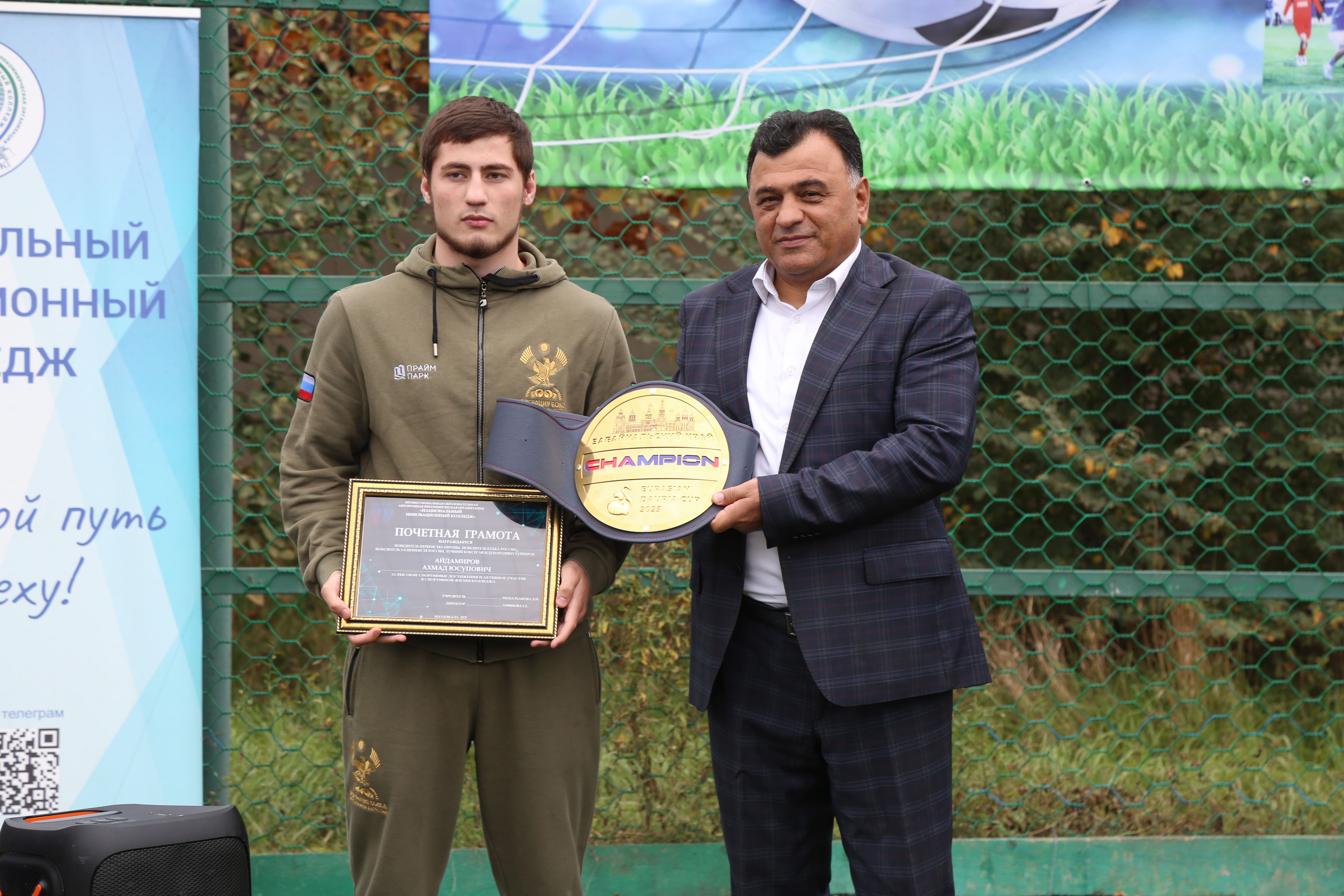 С приветственным словом выступил учредитель колледжа Байсонгуров Ибрагим Байсонгурович. Церемония награждения стала центральным моментом вечера. Футбольную команду, признанную Серебряным призером престижных соревнований, награждали лично Магомед-Шапи Сулейманов и Нурьян Нюрютдиновна. Особо были отмечены личные достижения игроков: лучшим вратарем турнира стал Алимурадов Султан, а звание лучшего полузащитника завоевал Гасанов Рамазан.