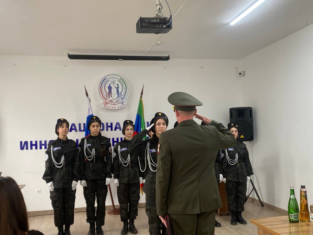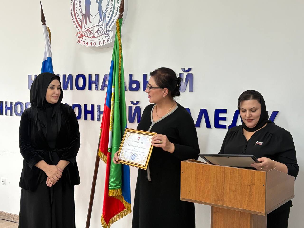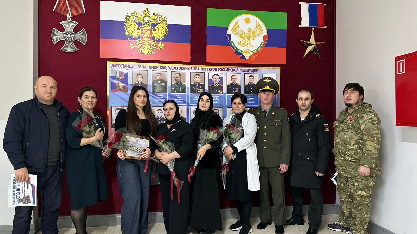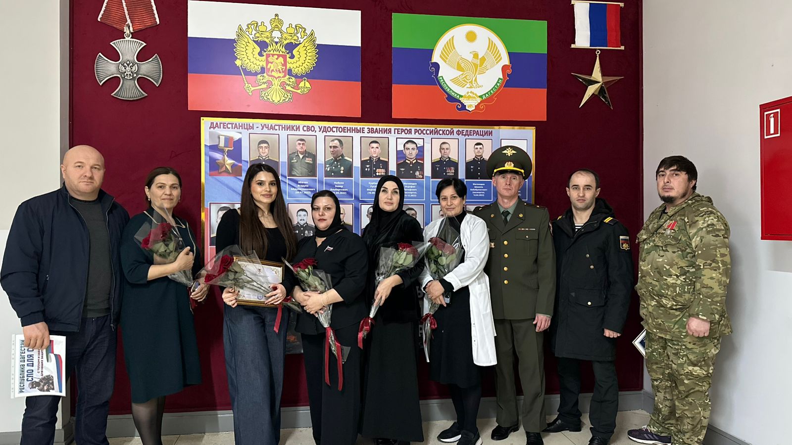 Среди почётных гостей были и представительницы Межрегиональной общественной организации "Сила матерей" – Мисриханова Сабина Казибеговна и Бахмудова Фарида Ибрагимовна. Их присутствие — живое напоминание о том, что основной закон страны стоит на защите мирной жизни, семьи и будущего, за которое сражаются наши герои. Представительницы организации "Сила матерей" в свою очередь вручили благодарности: научному руководителю ПОАНО "НИК" - Байсонгурову Ибрагиму Байсонгуровичу, директору колледжа - Аминовой Гулияр-Ханум Гаджиевне, руководителю отряда «Молодая Гвардия» ПОАНО "НИК" - Астаеву Федору Александровичу.